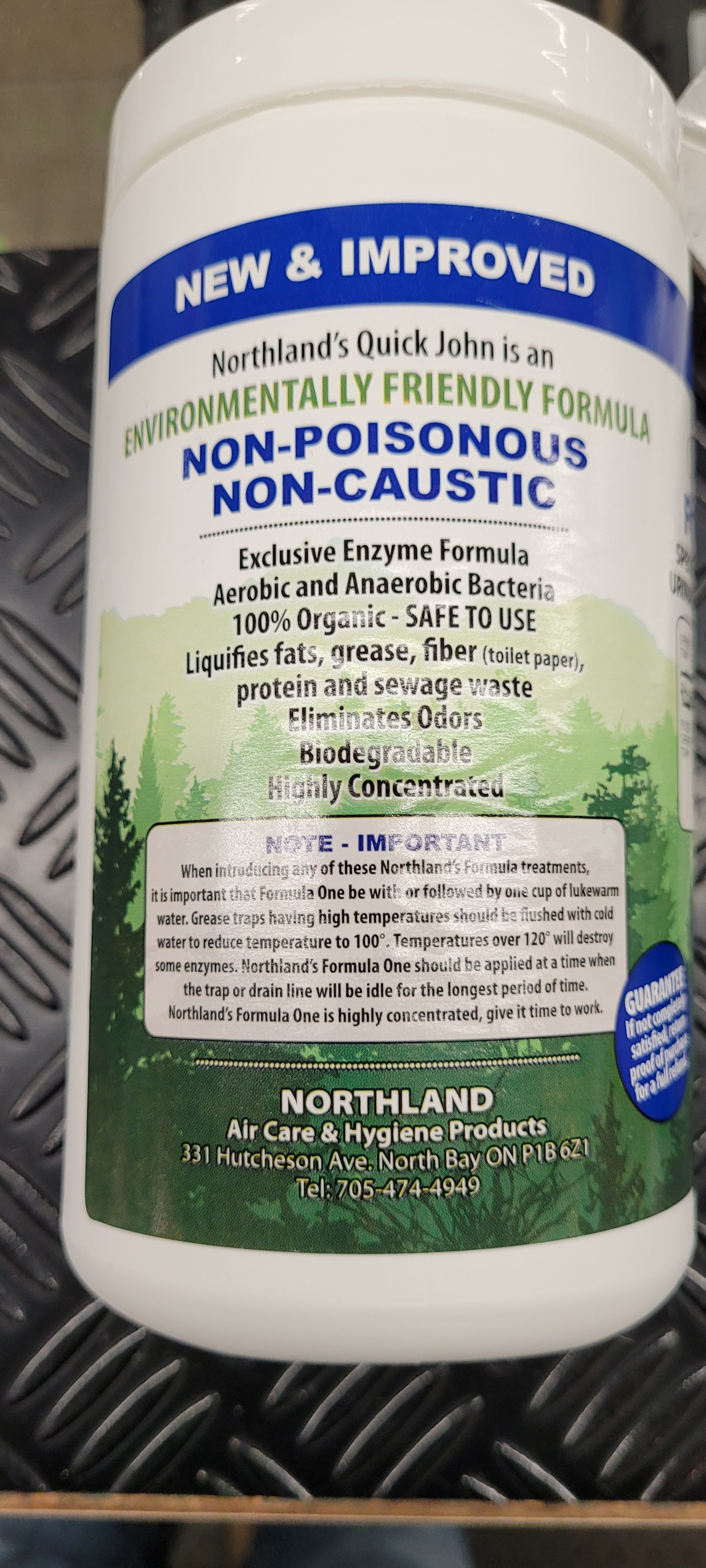 Quick John Blue Label- Formula One is the expert solution for slow drains and drain maintenance. With a powerful 10 billion bacteria per gram, it efficiently breaks down and eliminates clogs, leaving your drains clean and clear. Keep your plumbing running smoothly with Quick John Blue Label- Formula One.